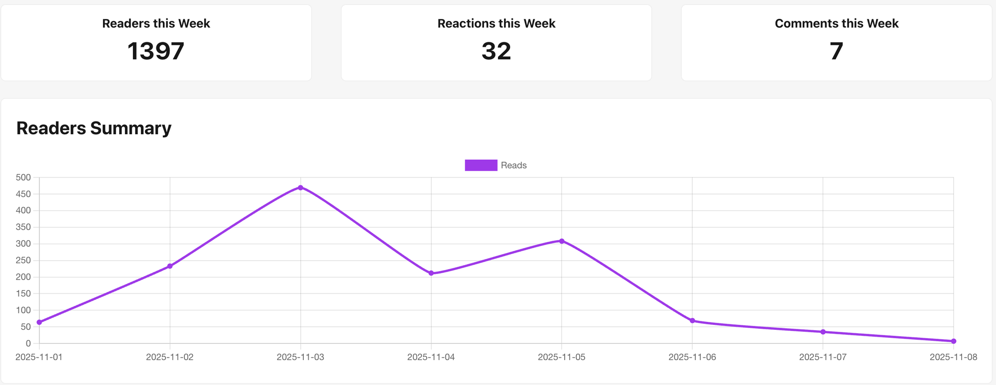 The first post - Build in Public: Day Zero - somehow got way more attention than I expected. It even made it into Dev.to’s Top 7 of the Week, which still feels a bit unreal.